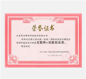 互聯網+創新創業獎榮譽證書