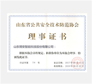 山東省公共安全技術防范協會理事證書