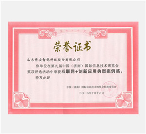 互聯網+創新應用典型案例榮譽證書
