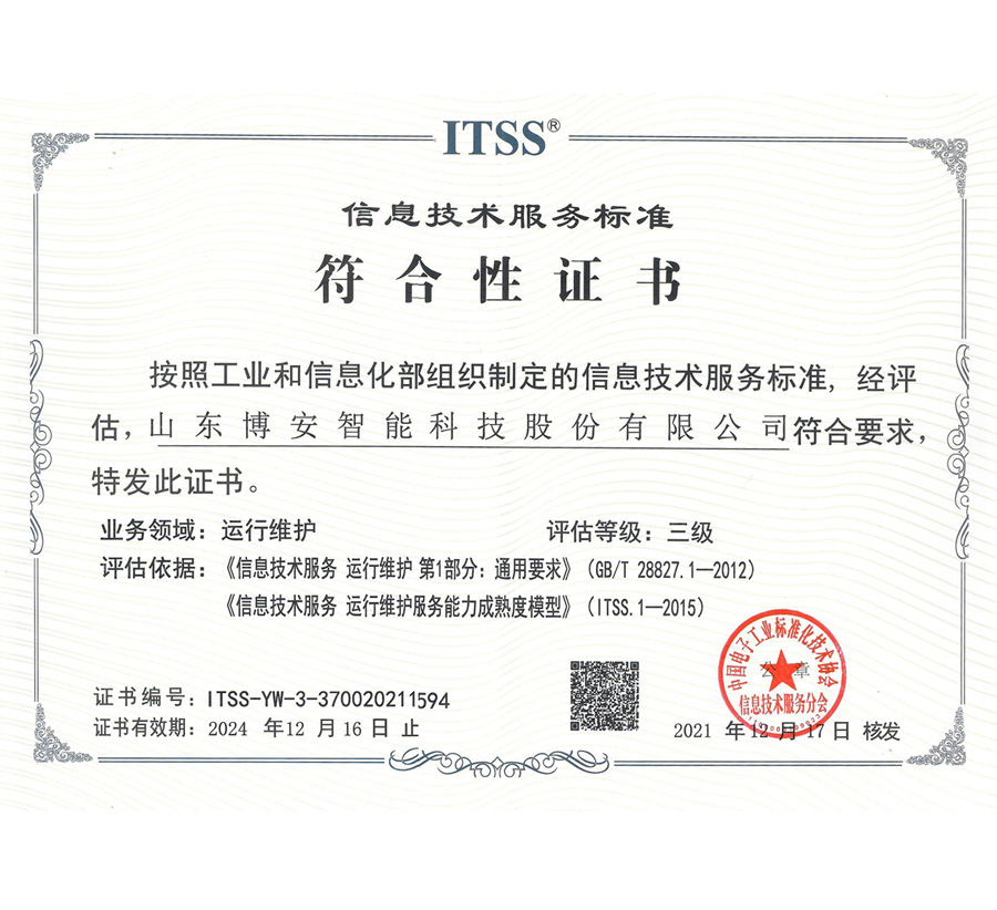 2021年ITSS信息技術服務標準符合性證書三級